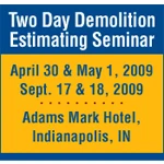 Call W. I. "Bill" Gumbiner - The Demolition Estimator Training Guy - and you will get 40-plus years of estimating, marketing and management experience. He is willing to pass on his knowledge of the demolition industry to owners, managers and estimators looking to shorten the mistake-ridden estimating and marketing "learning curve" in a two-day information-packed demolition estimating seminar. Plan to attend one of our seminars: April 30th & May 1st or Sept. 17th & 18th, 2009. Look forward to seeing you there.