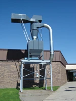 Sternvent now offers a cyclone dust collector with a storage hopper underneath for greater volume of waste storage. The 105-cubic-foot hopper is ideal for wood or plastic waste storage and features a 24-inch-square rack and pinion slide gate with hand-wheel or pull-chain operation. Available with top-mounted fan and silencer or with a ground-mounted fan for ease of maintenance. A range of seven basic models from 1,500 to 12,000 cubic feet per meter allows the selection of the right size cyclone for each application. Models range from 2 to 50 horsepower.