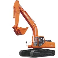 This crawler excavator features an operating weight of 73,000 pounds and is equipped with a Daewoo DE12T water-cooled engine delivering a horsepower of 245. Its EPOS (Electronic Power Optimizing System) allows the operator to maximize work efficiency during a range of operating conditions, minimizing fuel consumption. It offers a three power mode selection system and computer aided engine-pump control. Bucket capacity ranges from 1.63 cubic yards to 2.39 cubic yards. Includes a roomy, independent, shock- and noise-free operator’s cab, four side safety glass windows give all-around visibility.