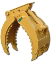 Grapples are designed for heavy demolition work, land clearing jobs and other tasks requiring maximum clamping, prying and breakout forces. Grapples come in both heavy-duty and high-capacity configurations. The heavy-duty configuration includes a two-over-three tine design with solid tines and serrated teeth. The high-capacity configuration includes a three-over-four tine design with boxed tines. Other components of FLECO grapples include a four-bolt flanged hinge and three working positions. Grapples are available in five sizes: 36 inches, 42 inches, 48 inches, 54 inches and 60 inches. They are designed for excavators in classes ranging from 20,000 to 110,000 pounds.