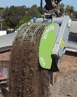 Portable screening attachment is designed for earthmoving, construction, demolition, public works, recycling and mining industries. The Australian-made attachment is a two-part bucket similar in size and shape to an earthmoving bucket with no internal moving parts. Material is sieved out through a mesh screening chamber as the FlipScreen rotates. Larger particles are retained inside by the unit’s inward spiraling action. Counter rotating the bucket ejects all the remaining oversize. The FlipScreen is capable of screening 660 tons of material per day, and can be fitted to 20 to 27.5 ton excavators.