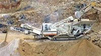 Mobile crushing plant uses a Nordberg NP1213 impact crusher. Machine can be used in either an open circuit process to make two different end product sizes or a closed circuit to make one, exactly calibrated end product. It has a crusher speed of 450 to 600 rpm. The feed opening measures 52 by 35 inches.