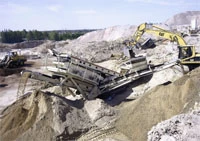 Track-mounted mobile screening plant designed for jobs requiring fine screening and multiple products. It's mounted on twin 15.75-inch wide hydraulically driven tracks and has a 12 foot by 5 foot 2-bearing screen. It also has adjustable screen angle. The Lokotrack ST352 is available with a direct feed system when a hopper and feed conveyor are not needed.