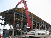 The company says its Link Belt LX 460 with a Jewell High Reach Demolition Package is capable of carrying an 8,000-pound tool at a height of 80 feet, and with a configuration modification, the same machine could handle a 5,700-pound tool at 93 feet.