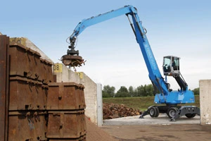 The new Terex Fuchs MHL350 E features a 214 horsepower turbo-charged diesel engine with an 8 percent increase in power output over previous models. Additionally the engine consumes less fuel and works in harmony with the machine’s new load-sensing hydraulic system that provides power on demand. There also is a new color display and anti-glare shield for control and monitoring of the magnetic system.