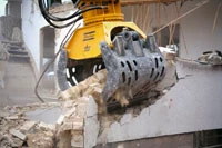 Atlas Copco Construction Tools LLC has introduced the MG 1900 hydraulic demolition multi-grapple attachment. With a high load capacity of 1.1 cubic yards and a maximum closing force of 8 tons, the MG 1900 is designed for sorting and loading rubble as well as demolition of masonry and wooden structures. At a service weight of 4,189 pounds, the MG 1900 is suitable for carriers in the 20 to 30 metric ton weight class. The unit operates at a maximum pressure of 5,076 psi and accepts maximum hydraulic flow of 40 gallons per minute. The grapple jaws of the MG 1900 open to a width of 87 inches to provide ample jaw capacity for various demolition applications. The jaws feature large bearing surfaces for reduced wear and higher productivity. Each jaw tip features a replaceable wear edge that can be flipped to provide a second wear surface. Excellent stability and durability is achieved through the carbon steel jaw design. A 306-degree hydraulic rotation unit on the MG 1900 allows for accurate positioning of the attachment to speed up work progress. Additionally, two hydraulic cylinders maximize the grapple’s closing forces. The cylinders are guarded to protect against outside debris, and a built-in rotation protection system reduces ear and tear on the carrier.