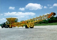 Grasan portable hoppers and bins are available with our without variable-incline belt feed conveyors and variable-rate vibratory pan feeders. Hoppers and bins are designed to handle a variety of bulk materials in construction, demolition, aggregate and concrete recycling and mining applications. Feed hoppers handle materials at rates of 300 to 1,000 tons per hour and can be used for everything from loading trucks, barges and rail cars to feeding crushers and screen plants. Typically, bins and hoppers are mounted on a wide flange beam chassis with truck axles, air brakes and signal lights for highway towing. Grasan engineers will customize designs to meet individual customer needs.