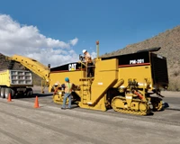 The PM-201 is a high production half-lane milling machine that performs controlled depth removal of asphalt and concrete pavements for rehabilitation and maintenance of existing roadways. It is powered by a Cat C18 engine with ACERT Technology. It has two propel speeds, three rotor options, four mode steering and optional automatic grade and slope control. Drive tracks are 80.5 inches long, 14 inches wide and feature replaceable steel reinforced polyurethane track pads for long service life. All three rotors are 83 inches wide and have a maximum cutting depth of 12 inches. An LED display panel displays desired selections by the operator such as engine rpm, propel speed and direction selection and various other machine functions. Other options include hydraulically operated side plates, upper conveyor cover, an auxiliary rotor drive and a high pressure washdown system.