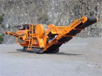 The R800 is a track mounted jaw crusher. The rotor measures 800 x 500 mm. The machine is capable of processing up to 120 tons per hour and weighs 24.8 metric tons and measures 9.6 meters long. Mobile Jaw Crusher