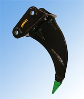 Ripper attachment is designed for use with base machines from 2,000 to 10,000 pounds. It has a replaceable Esco tooth and features a reinforced single tine and a heavy-duty reinforced machine connection. Ripper