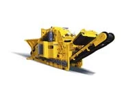 The RM-60 is the most compact of the Rubble Master line. The machine has a transport weight of 12 metric tons. The RM-60 can process up to 80 tons per hour. It is powered by a 70-hp engine and has a feeding height of 6 feet, 4 inches. Mobile Impact Crusher