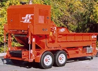 Grinder is specifically designed for processing wood debris, but can also handle drywall and cardboard. It has an end loading height of 3 feet, 10 inches and a side loading height of 5 feet, 1 inch. The infeed hopper is open-ended for hand loading. It has 56 reversible teeth and a drum width of 56 inches.