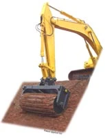 The Thompson Slope Packer is designed to eliminate the expensive task of packing slopes with a crawler tractor. Slopes can be packed with an excavator on any grade and in any soil condition. Available in 4, 6 and 8 foot widths for various size excavators.
