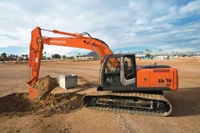 Hitachi has introduced a powerful utility-class ZX200LC-3 excavators to its line of larger excavators. The Zaxis 200LC-3 has a four-cylinder Tier-3-certified Isuzu engine, which provides significant power for high-production applications. Heavier, stronger, faster, and quieter than its six-cylinder predecessor, the ZX200LC-3 is also more fuel efficient. New E, P, and H/P modes can be selected to suit job needs. The E mode can save fuel consumption up to 13 percent compared to the previous model.